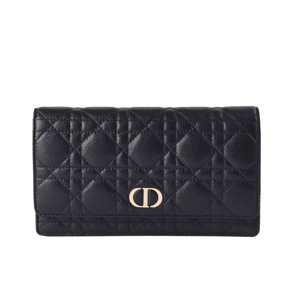 Soft calfskin leather with cannage stitching and ‘CD’ logo on flap. Adjustable/removable chain to be worn as belt or crossbody