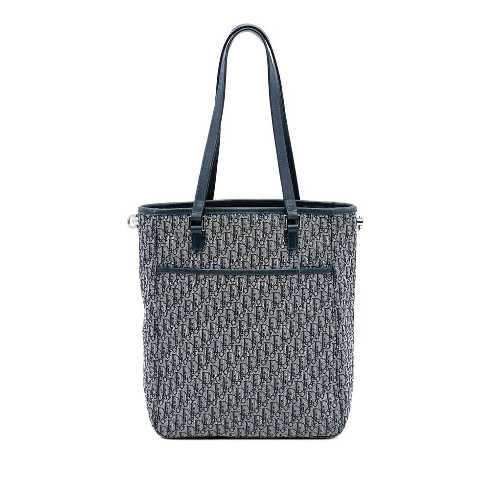 This tote bag features a canvas body, flat shoulder straps, an open top, and an interior zip pocket.