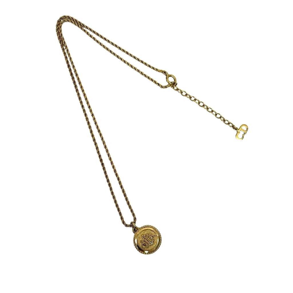 Dior Gold Plated Logo Round Emblem Pendant Necklace Gold Met