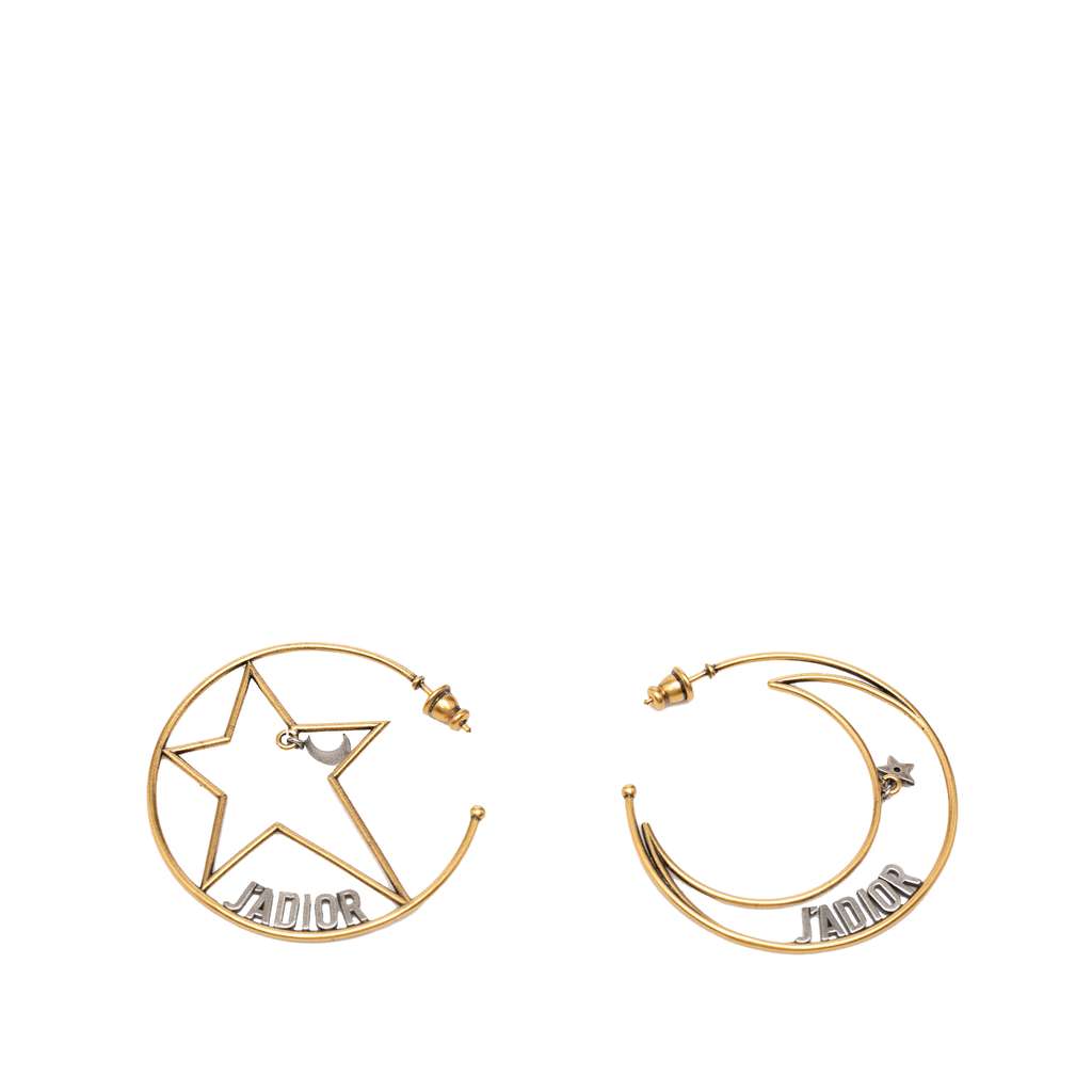 Dior Gold Plated Moon and Star JAdior Hoop Push Back Earring