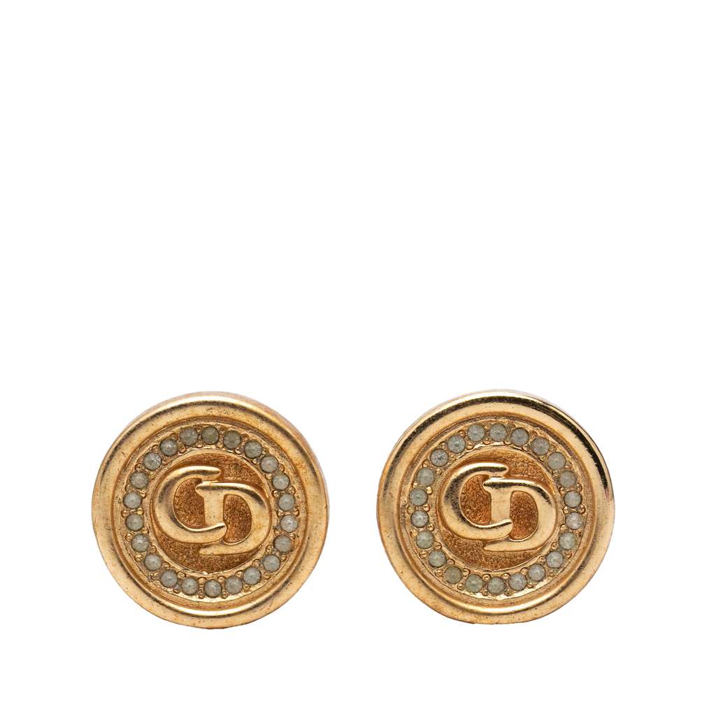 Dior Gold Plated Strass CD Logo Clip On Earrings Gold Metal