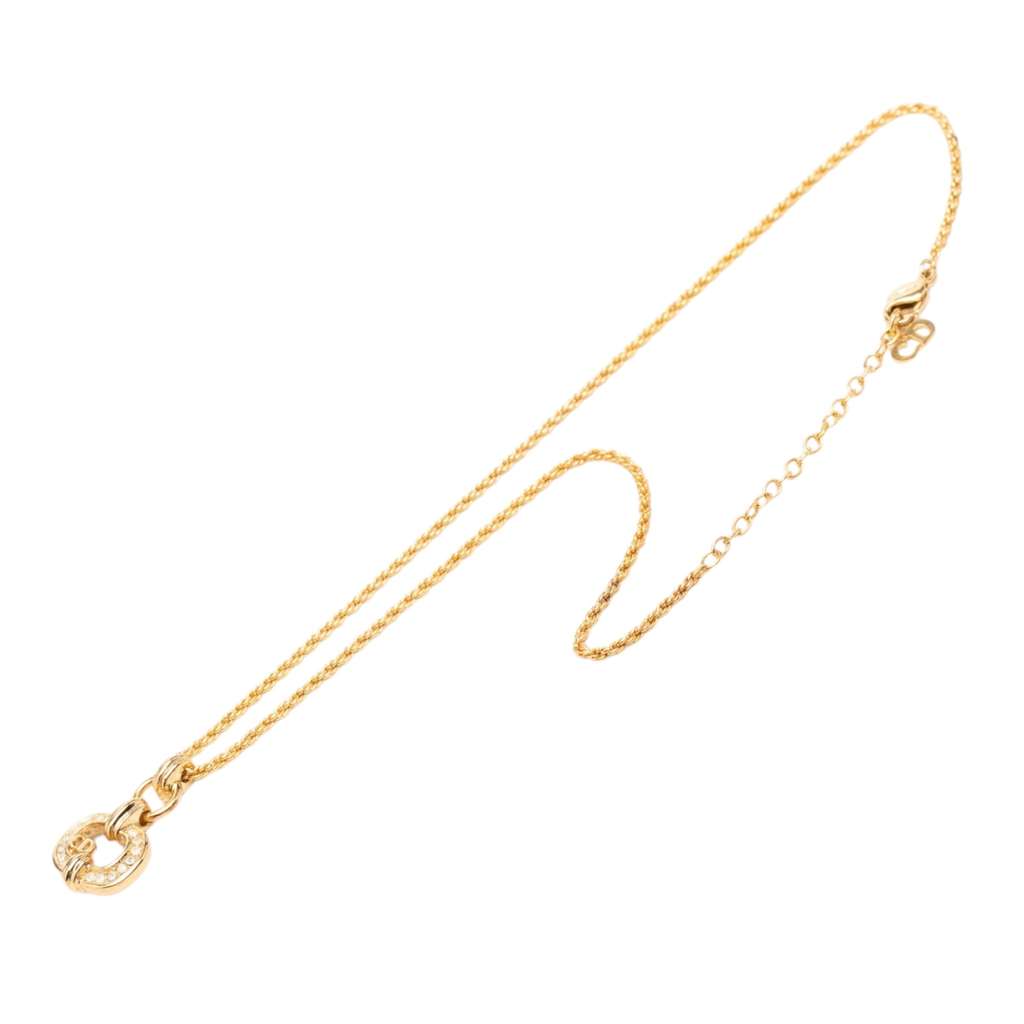 Dior Gold Plated Strass CD Logo Pendant Necklace Gold Metal