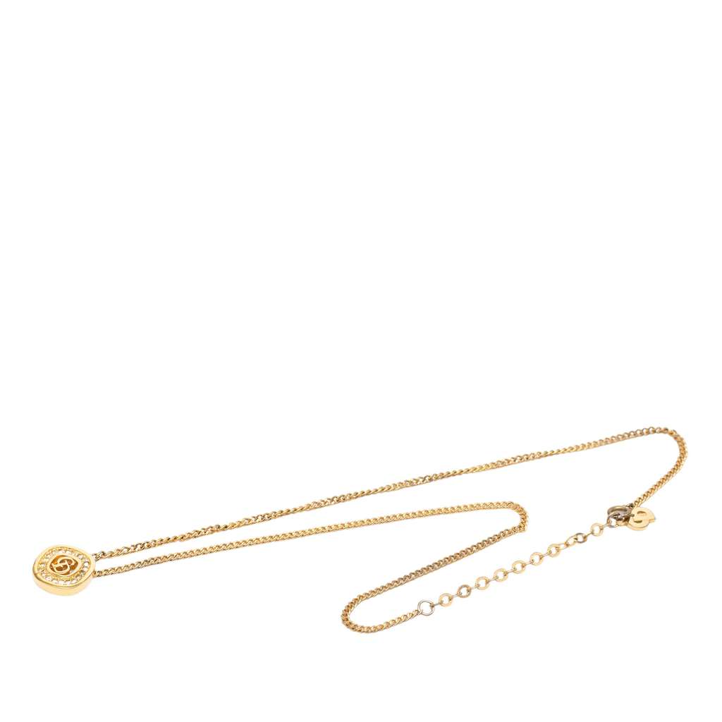 Dior Gold Plated Strass CD Logo Pendant Necklace Gold Metal