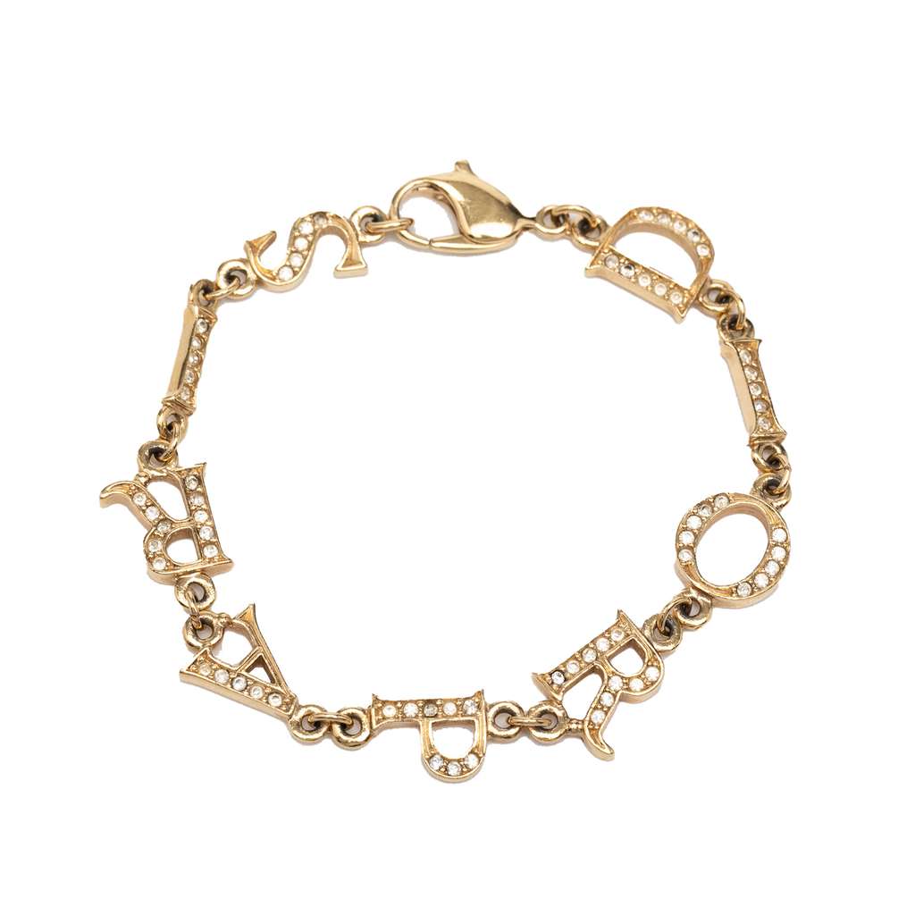 Dior Gold Plated Strass Logo Charm Bracelet Gold Metal