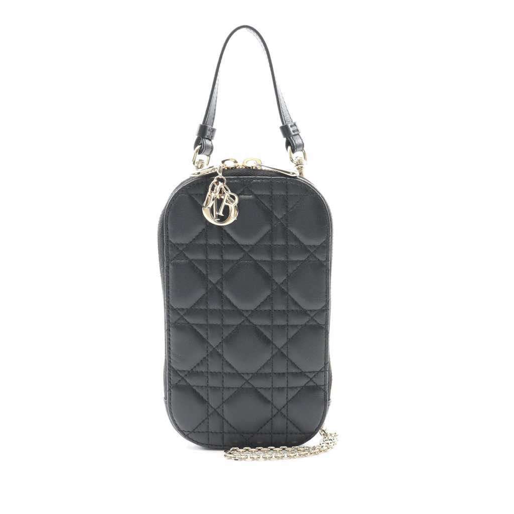This satchel features a quilted lambskin leather body, a flat leather handle, a detachable chain link shoulder strap, a top zip closure, and interior card slots.