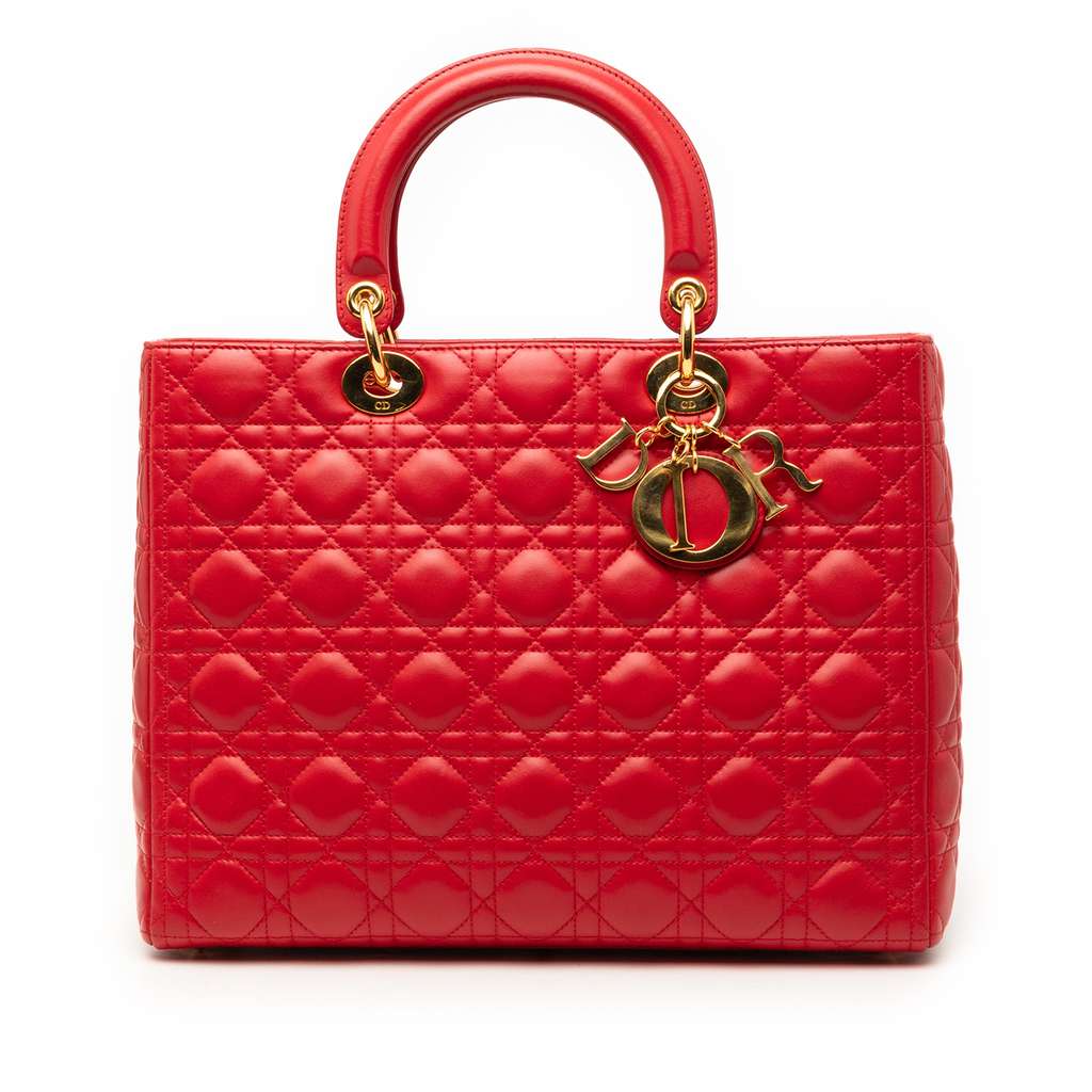 Dior Large Lambskin Cannage Lady Dior Red Large Leather