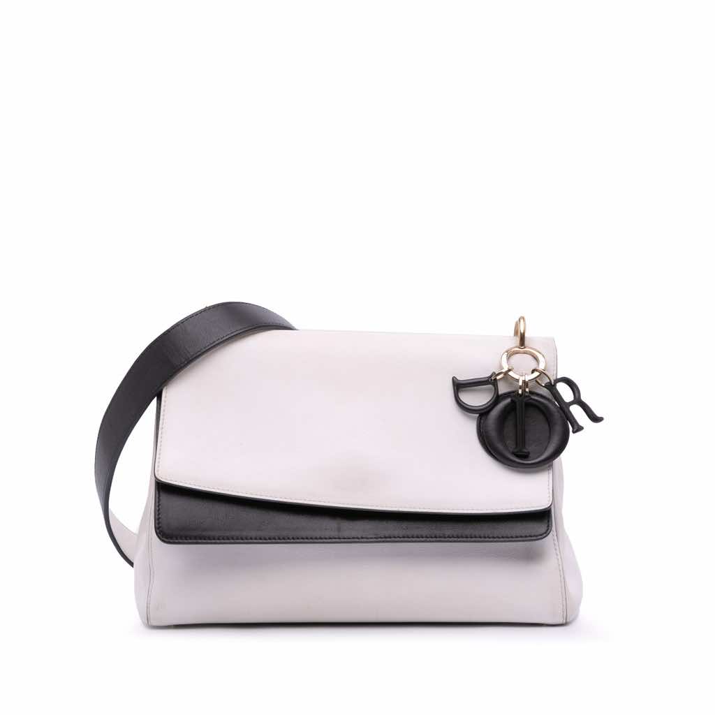 The Be Dior Double Flap features a leather body, a flat leather strap, double flaps with magnetic button closure, an exterior slip pocket, and interior slip pockets.