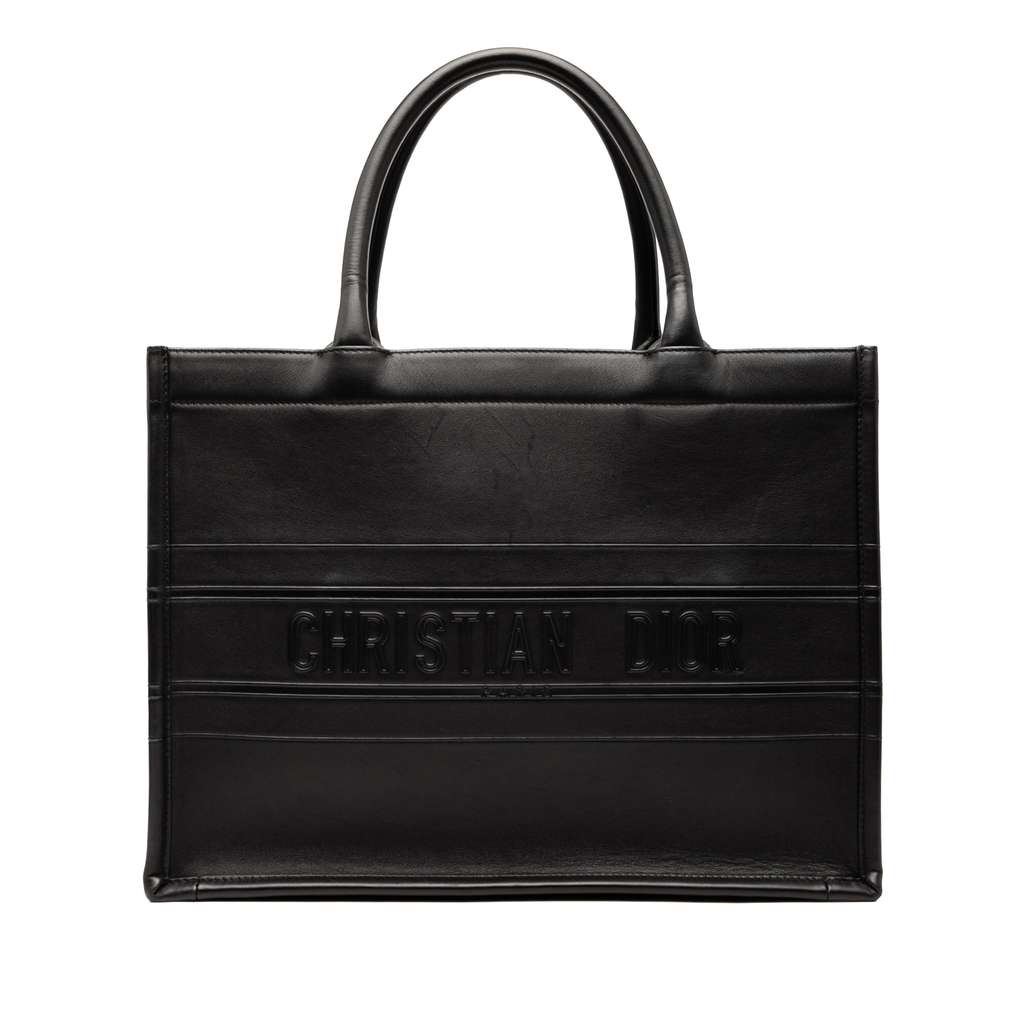 The Book Tote features a leather body, rolled leather handles, and an open top.