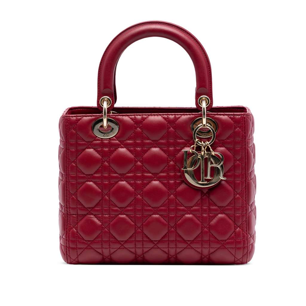 Dior Medium Lambskin Cannage Lady Dior Red Small Leather