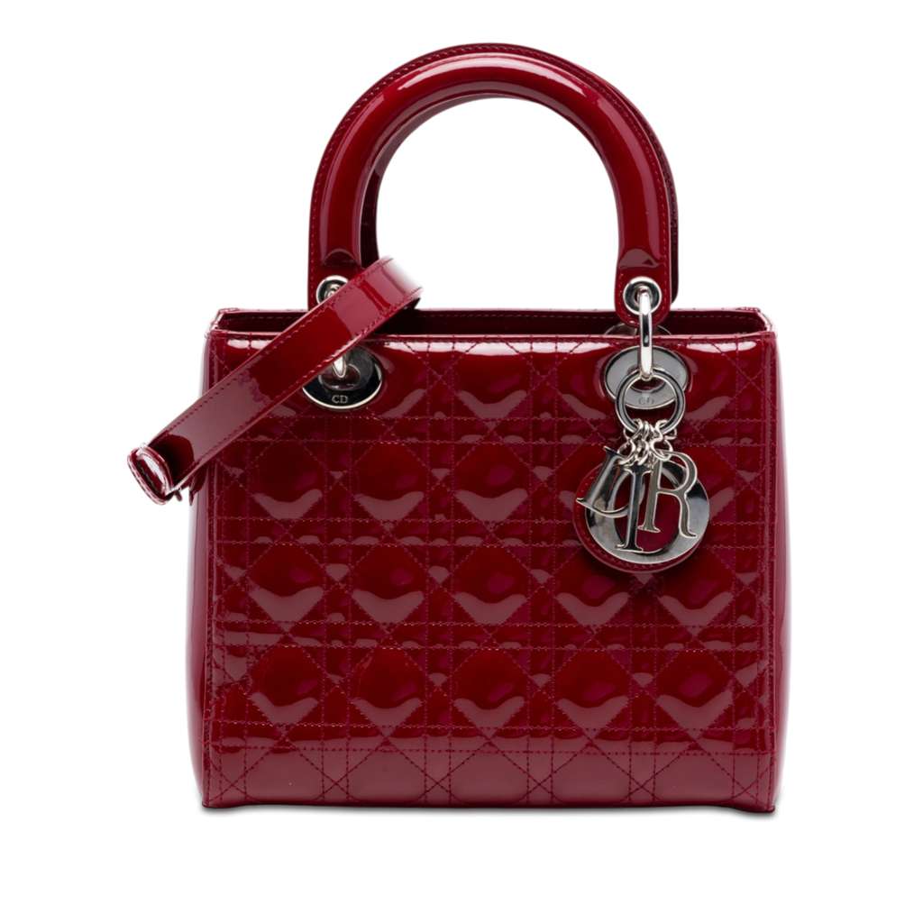 Dior Medium Patent Cannage Lady Dior Red Small Leather