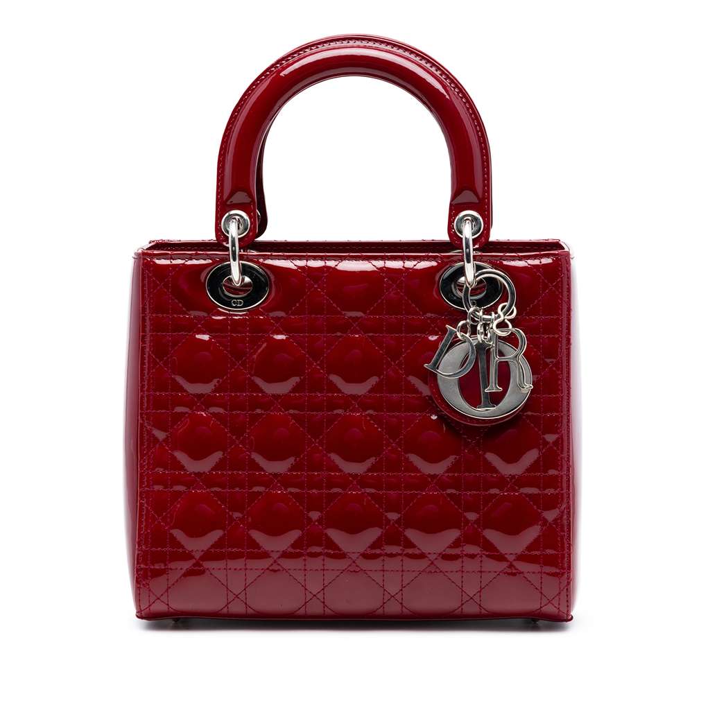 Dior Medium Patent Cannage Lady Dior Red Small Leather