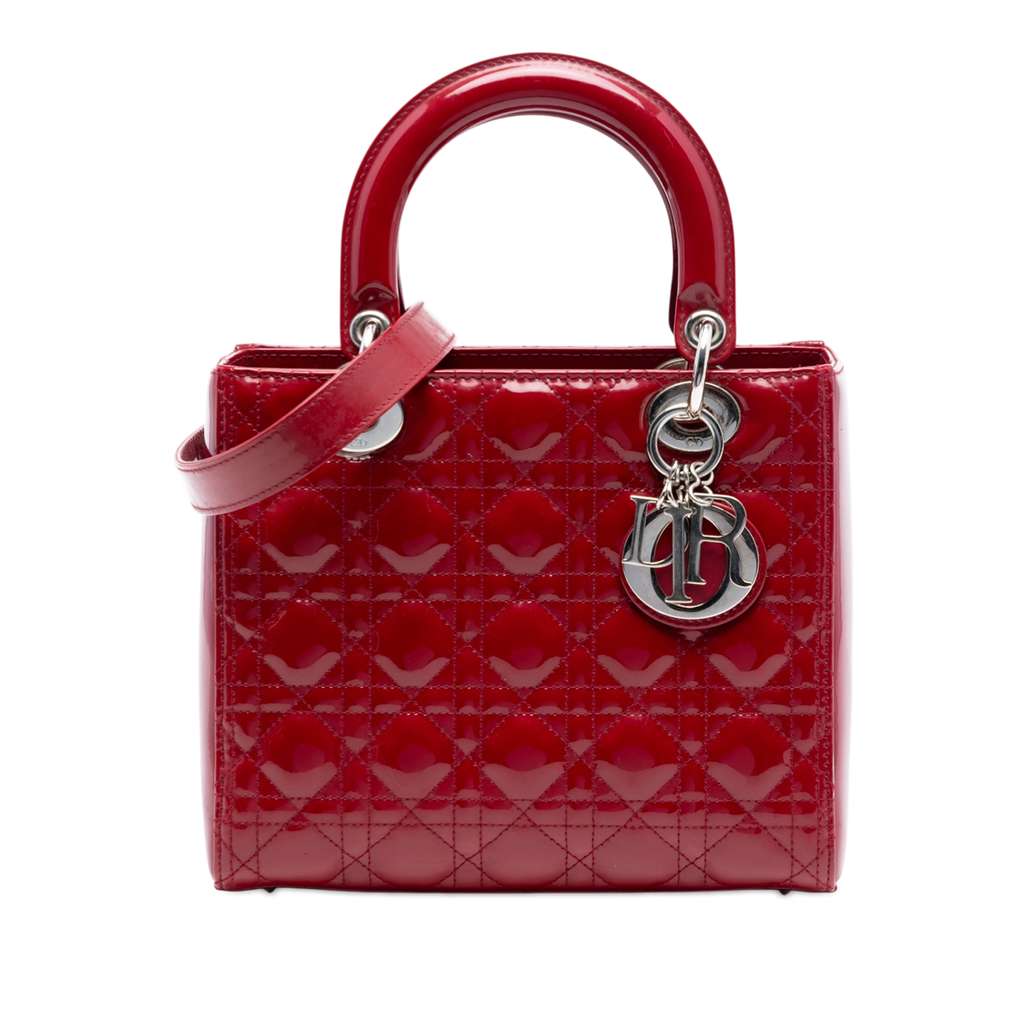 Dior Medium Patent Cannage Lady Dior Red Small Leather
