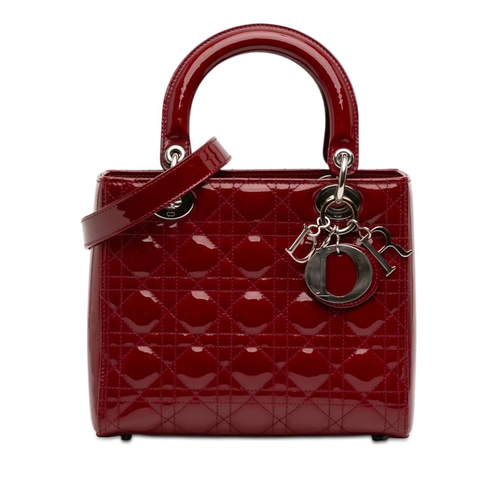 Dior Medium Patent Cannage Lady Dior Red Small Leather