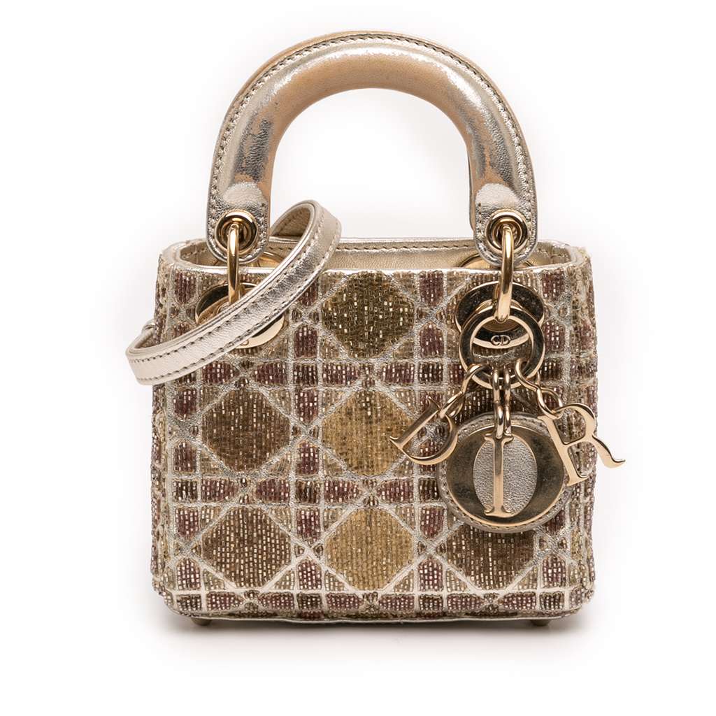 Dior Micro Metallic Calfskin Cannage Beaded Lady Dior Gold M