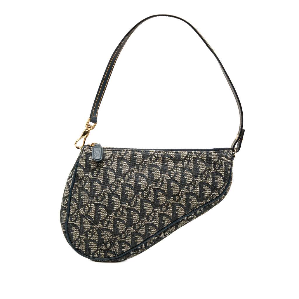 Dior Mini Diorissimo Canvas Saddle Pochette Blue Small Canva