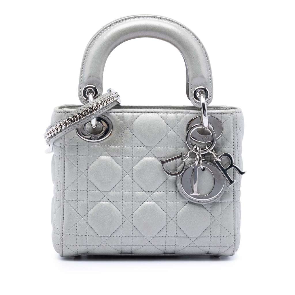 Dior Mini Iridescent Lambskin Cannage Lady Dior Silver Mini