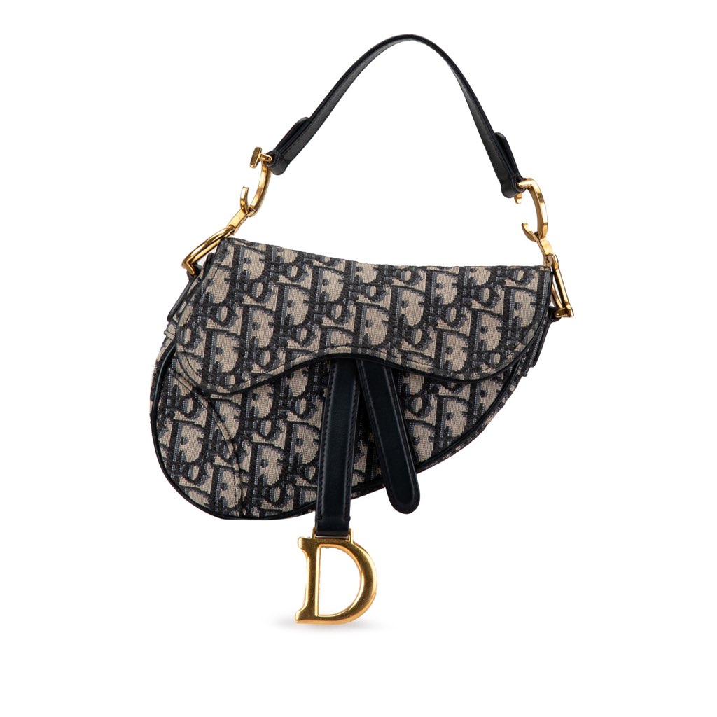 The Saddle features a canvas body, a flat leather handle, a detachable strap, and a flap with velcro closure.
