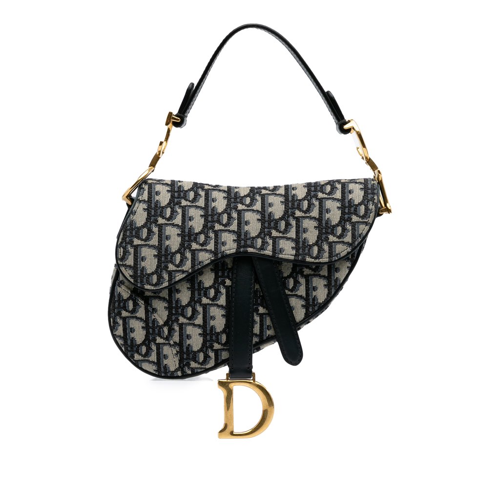 The Saddle features a canvas body with leather trim, a flat leather handle, and a flap with touch fastener closure.