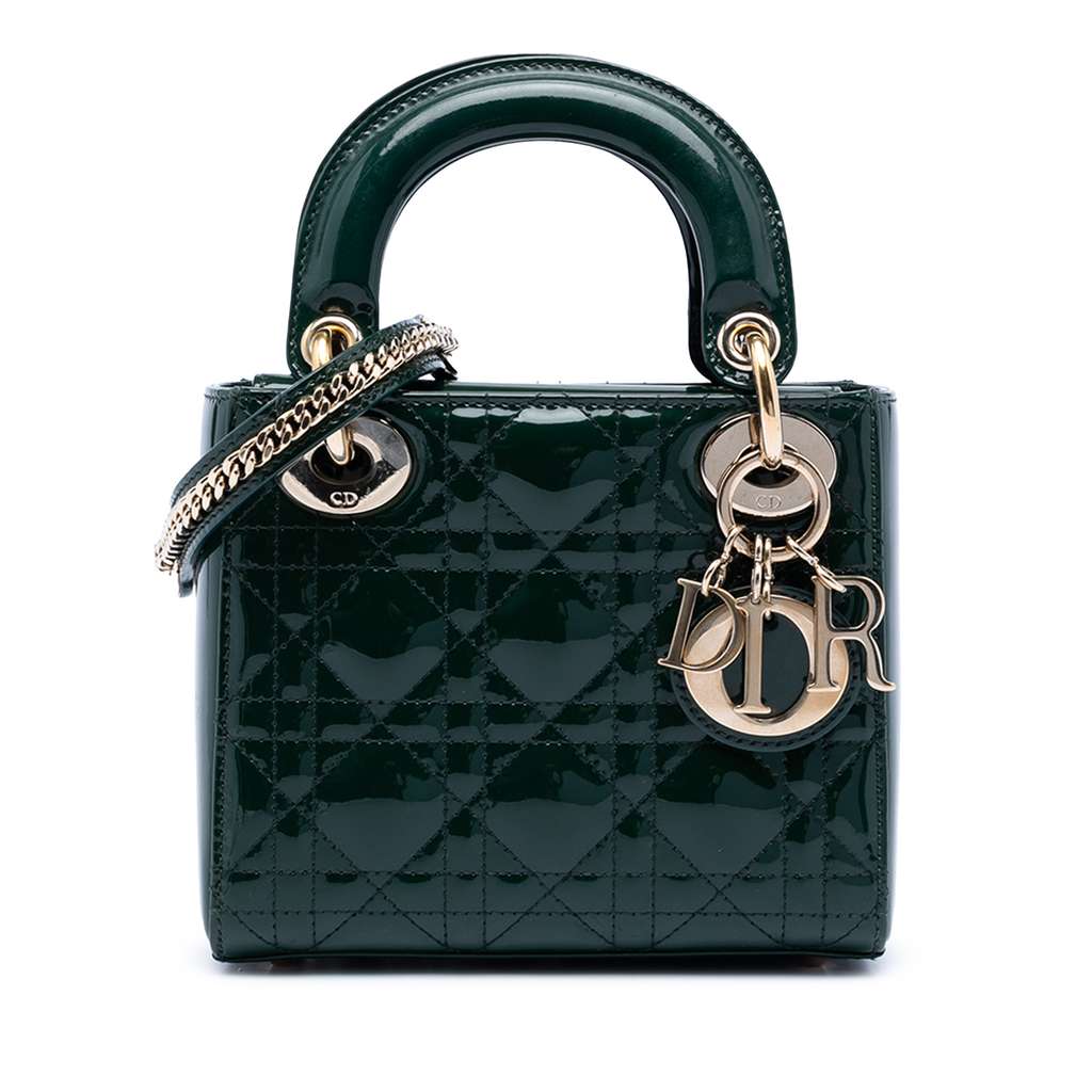 Dior Mini Patent Cannage Lady Dior Green Mini Leather