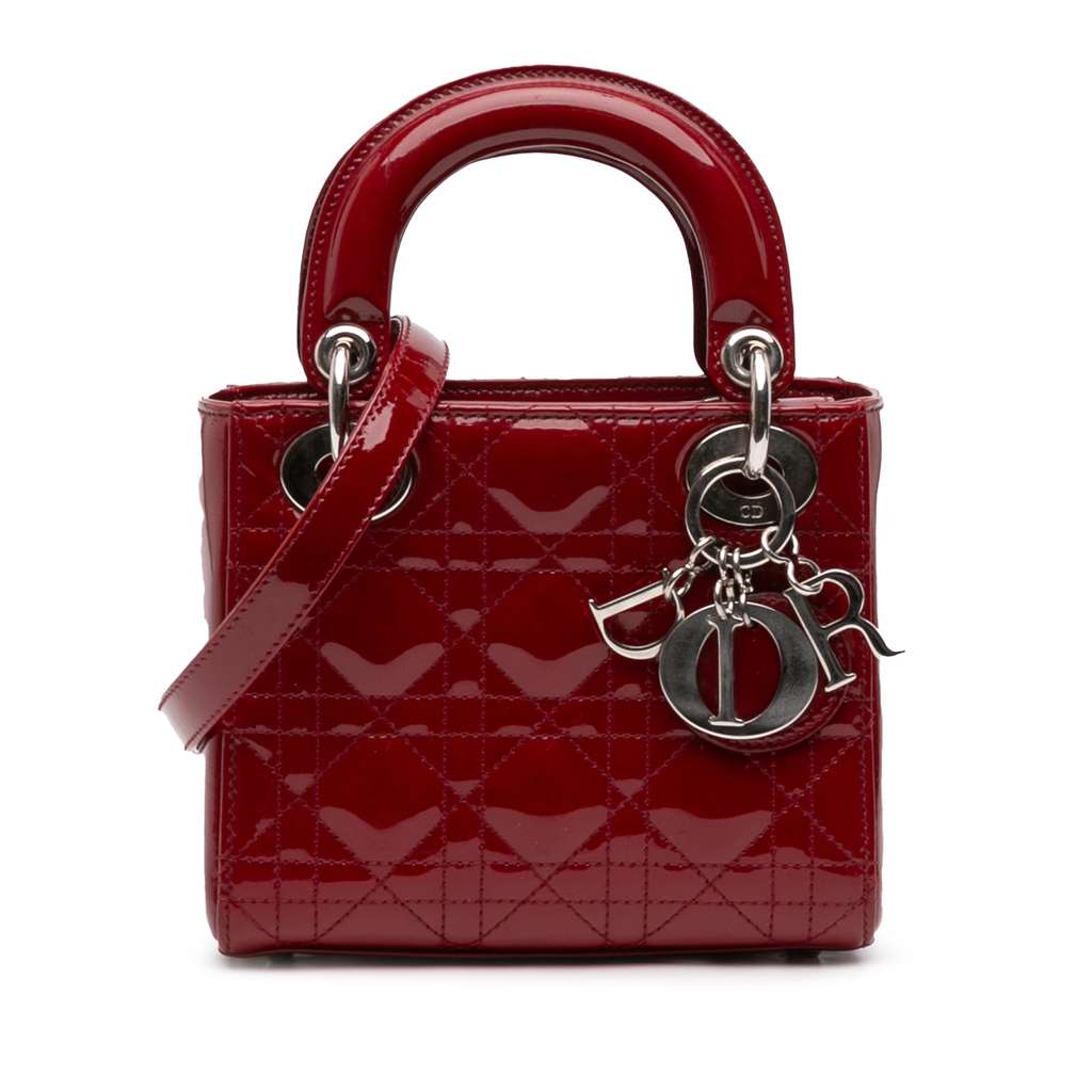 Dior Mini Patent Cannage Lady Dior Red Mini Leather