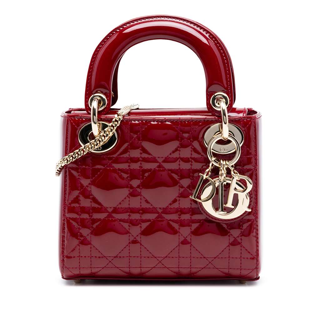 Dior Mini Patent Cannage Lady Dior Red Mini Leather