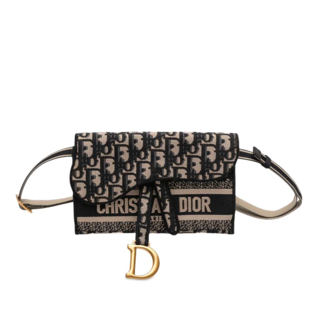 Dior Oblique Canvas Embroidered Saddle Slim Belt Pouch Blue
