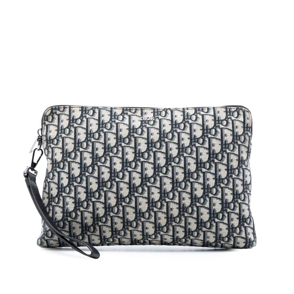 Dior Oblique Canvas Pouch Blue Large Canvas | Pre-Loved Luxu