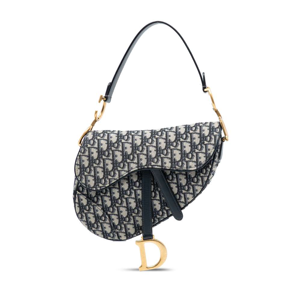 The Saddle features a canvas body with leather trim, a flat leather strap, a front flap with magnetic closure, and an interior zip pocket.