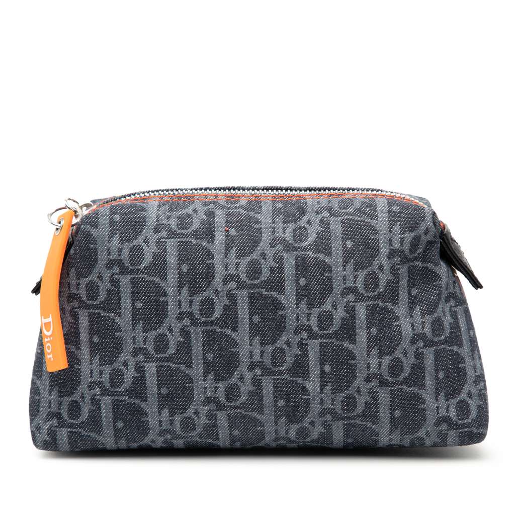 Dior Oblique Denim Flight Cosmetic Pouch Blue Denim