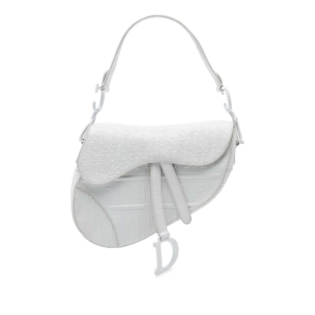 The Saddle features an embossed leather body, a flap with magnetic snap closure, and an interior zip pocket.