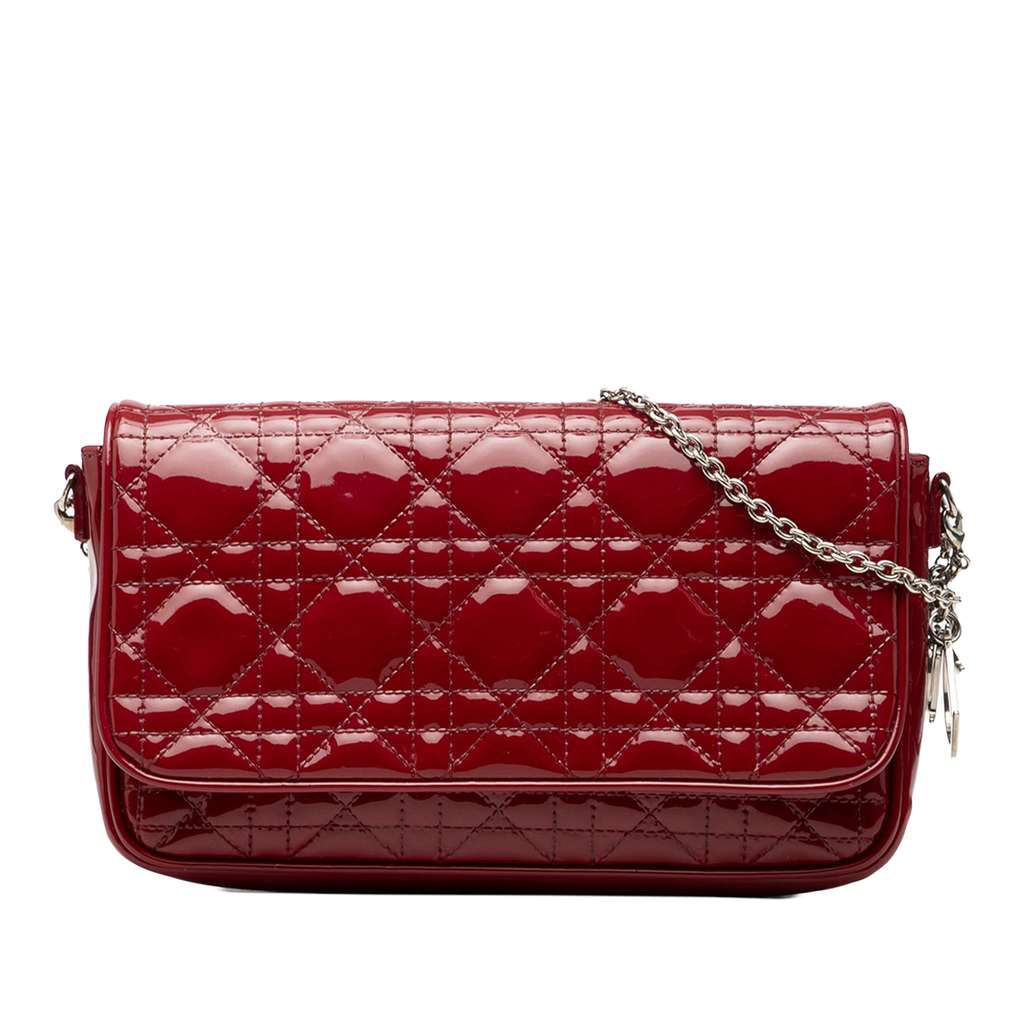Dior Patent Cannage Lady Dior Wallet On Chain Red Small Leat