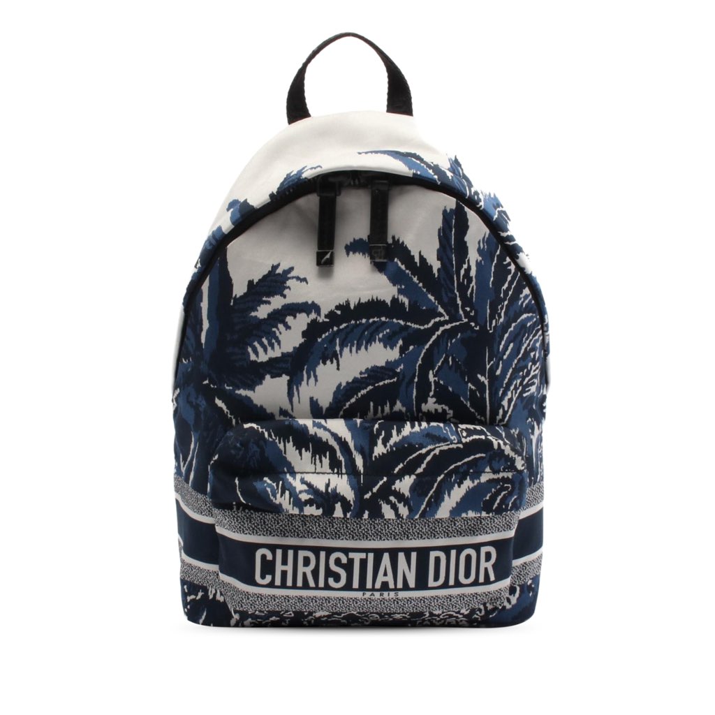 Dior Technical Fabric Palms Diortravel Backpack Blue Small