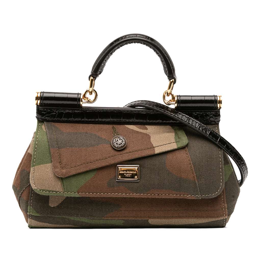 Dolce & Gabbana Camouflage Canvas Miss Sicily Satchel Brown