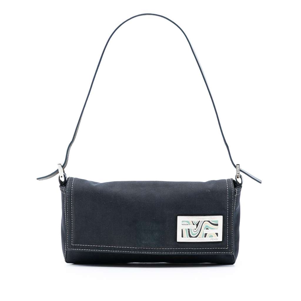 Fendi Canvas FF Marble Baguette Shoulder Bag Blue Small Canv