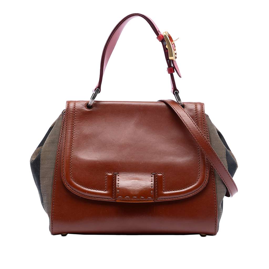 Fendi Leather and Pequin Canvas Silvana Satchel Brown Medium