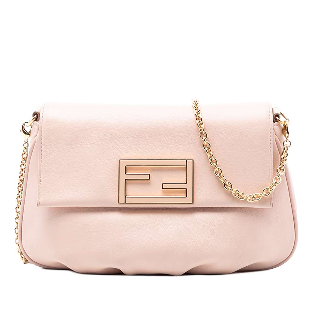 Fendi Leather Fendista Pochette Crossbody Pink Small Leather