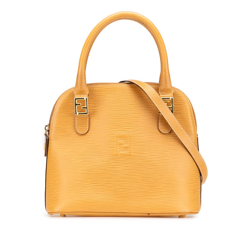This satchel features a leather body, rolled leather handles, a detachable flat leather strap, a top zip closure, and an interior zip pocket.