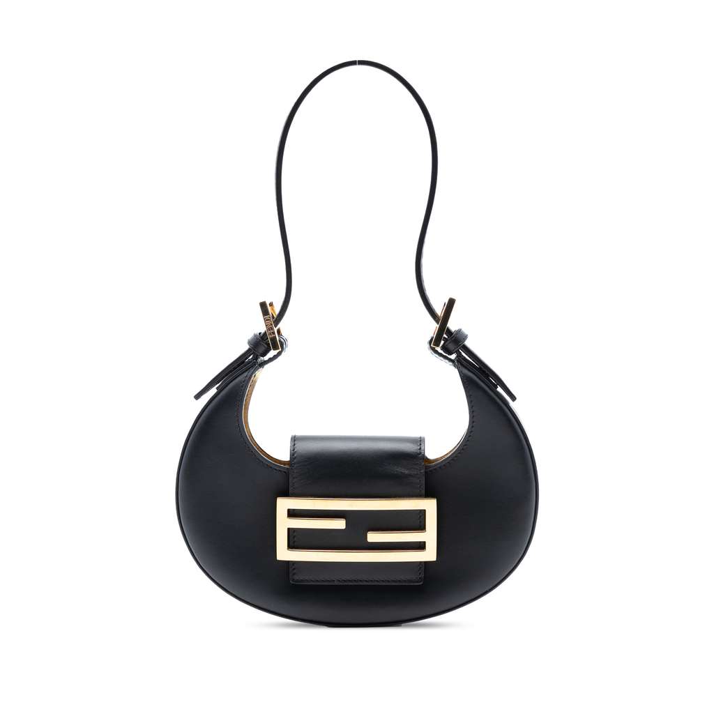 The Mini Cookie hobo bag features a leather body, an adjustable flat shoulder strap, and a top strap with magnetic snap closure.