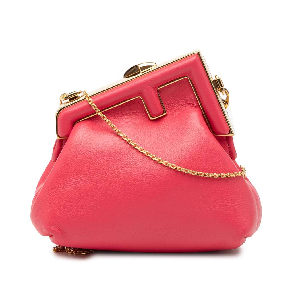 Fendi Nano Shiny Nappa First Bag Charm Crossbody Pink Mini L