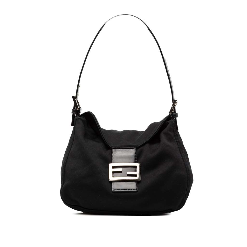 Fendi Neoprene Double Flap Shoulder Bag Black Small Polyeste