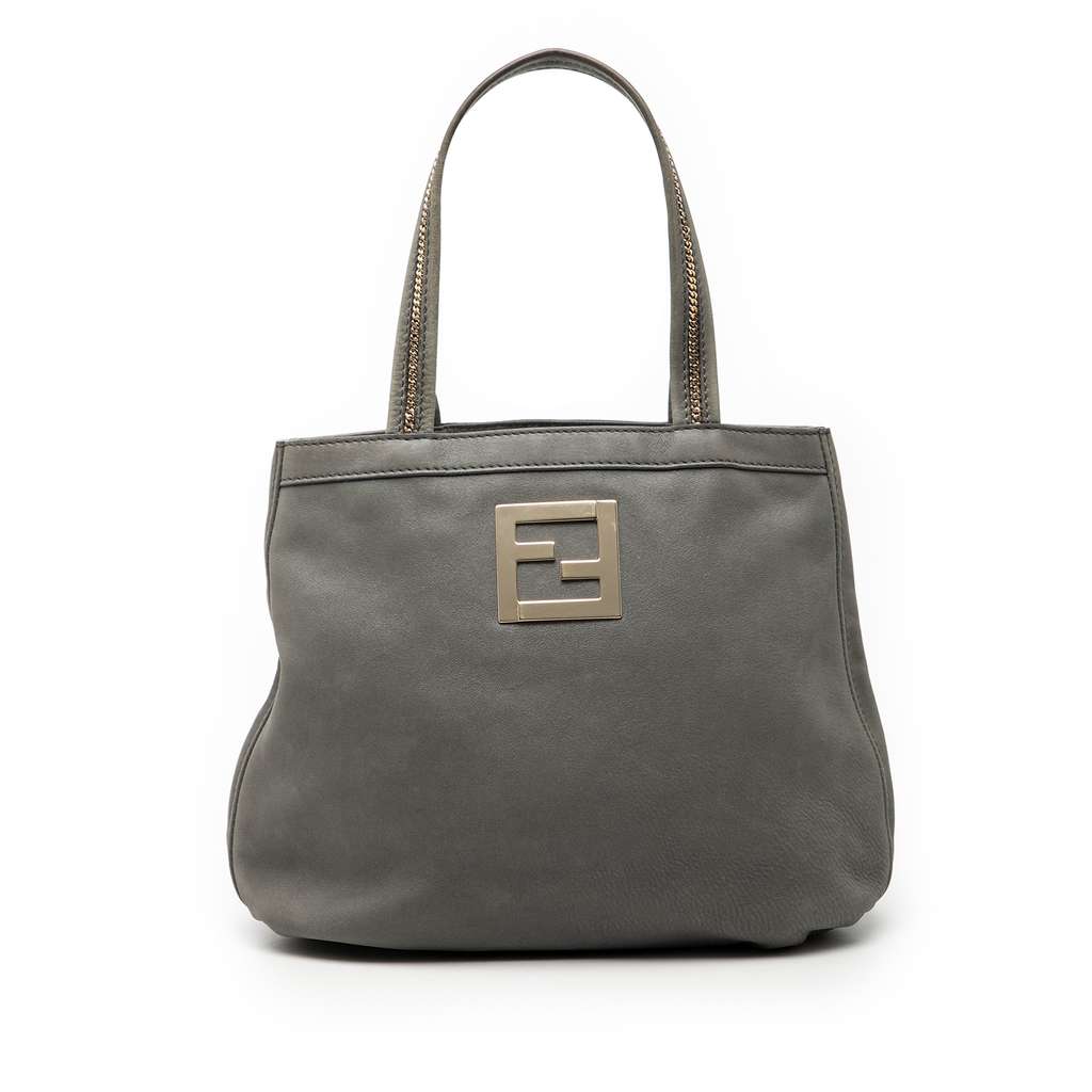 Fendi Nubuck FF Chains Tote Grey Large Leather | Pre-Loved L