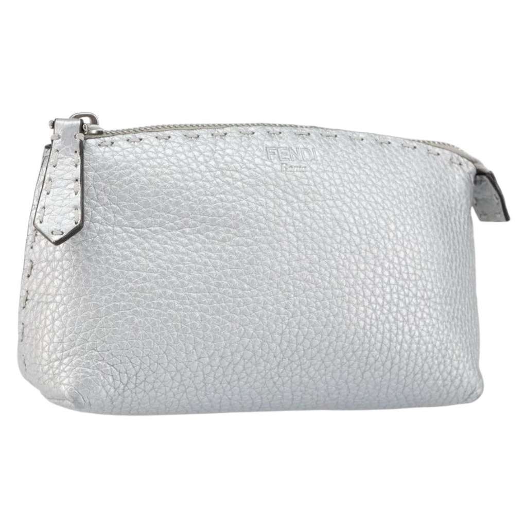 Fendi Selleria Zip Pouch Silver Mini Leather | Pre-Loved Lux