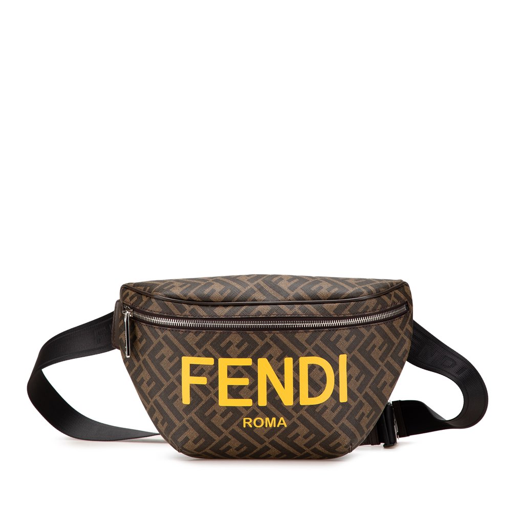 Fendi Shiny Glazed Fabric Vitello Cover FF 1974 Logo Belt Ba