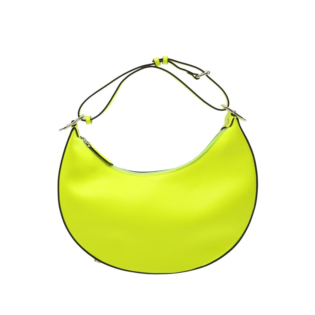 The Fendigraphy Hobo features a leather body, an adjustable flat leather strap, gold-tone hardware at the bottom, and a top zip closure.