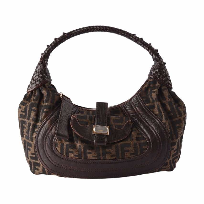 Vintage Spy hobo shoulder bag with zucca FF motif patterns and leather top handle and trim