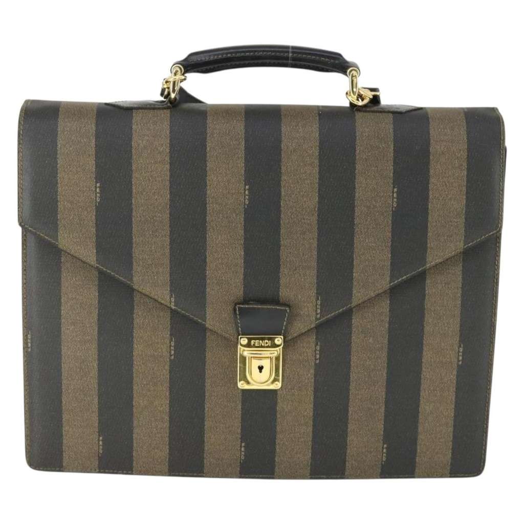 Fendi Vintage Pequin Briefcase Bag Brown X-Large Canvas
