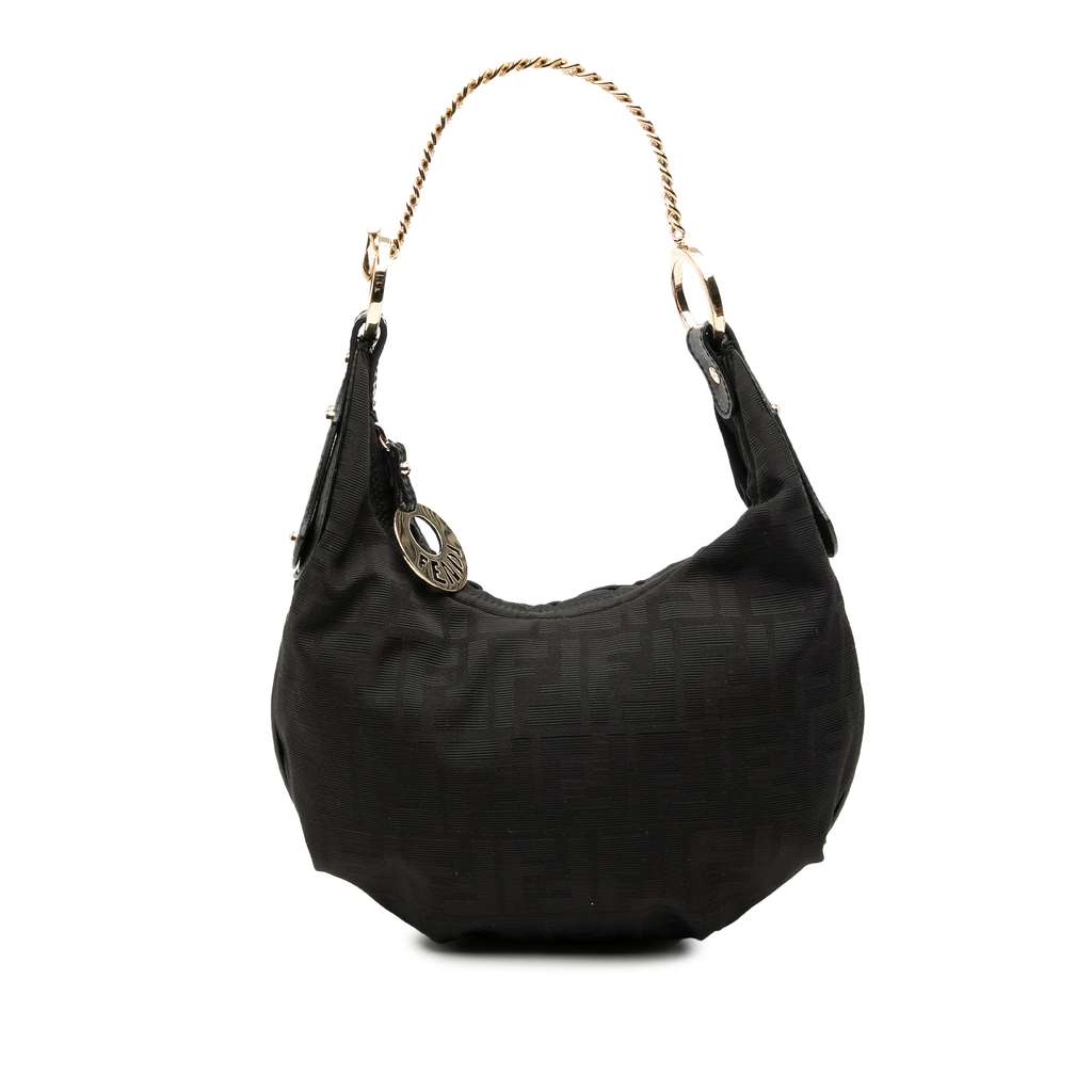 Fendi Zucca Canvas Chef Chain Hobo Bag Brown Medium Canvas