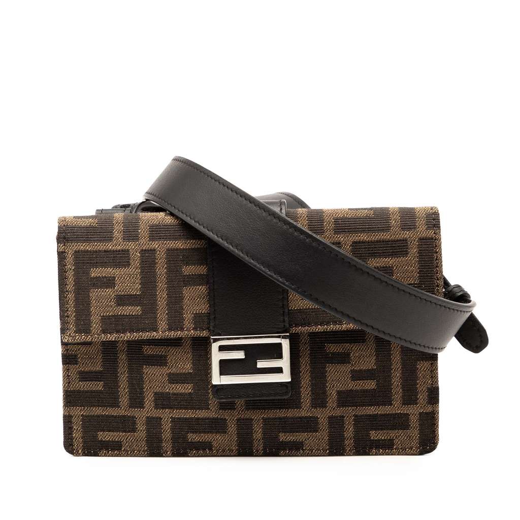 This crossbody bag features a canvas body, a detachable flat leather strap, a front flap with snap button closure, and an interior zip pocket.