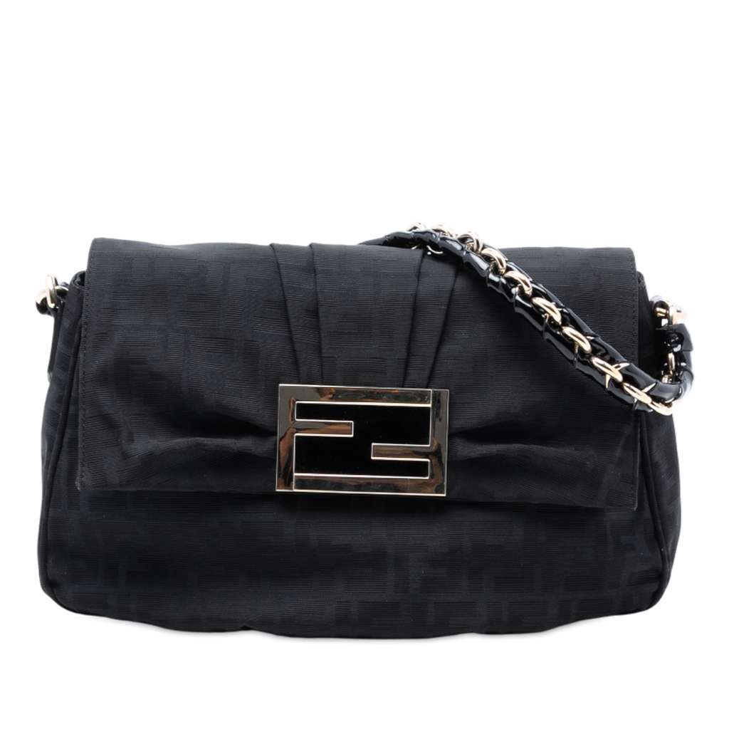 Fendi Zucca Canvas Mia Flap Shoulder Bag Black Large Canvas