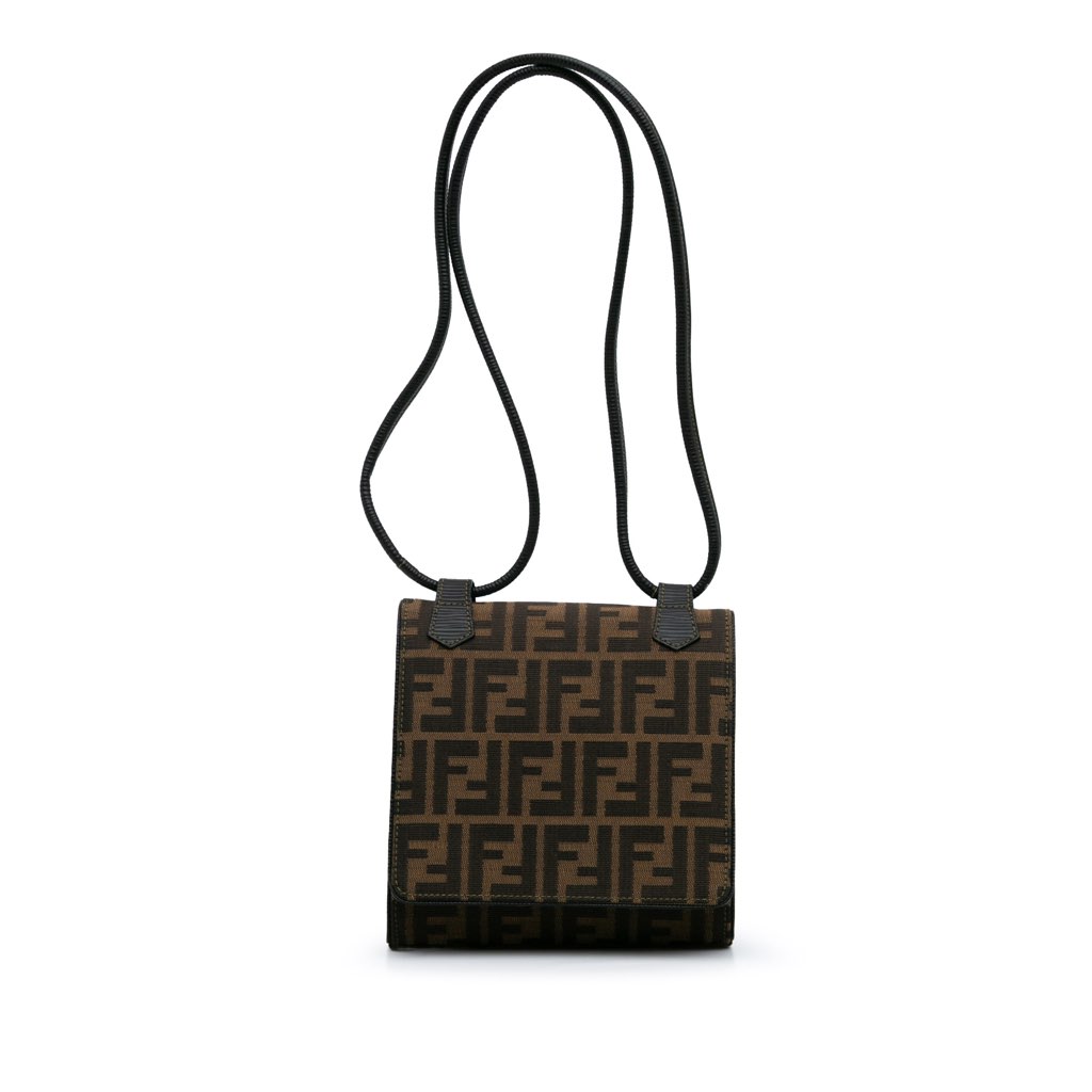 This shoulder bag features a canvas body, a flat leather strap, a front flap with magnetic snap closure, and interior zip and slip pockets.